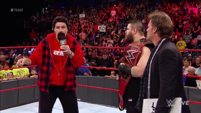 .@RealMickFoley announces the first-ever #KevinOwensShow talk show on #RAW, with special guest, @GOLDBERG!